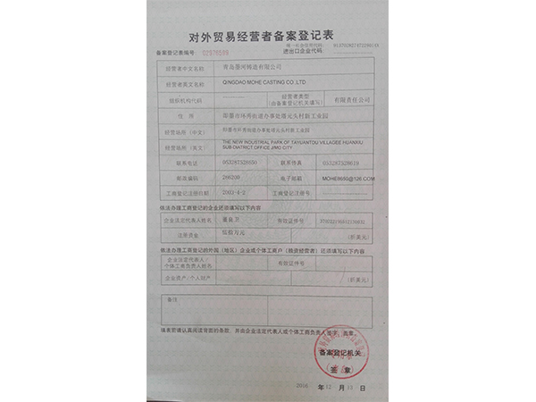 青島墨河鑄造有限公司 聯(lián)系人:董照 電話:13953213469(微信同號(hào)) 座機(jī):0532-87566543 郵箱:mohe@moher.cn QQ:1678294021 地址:青島即墨市泰山一路南端186號(hào)